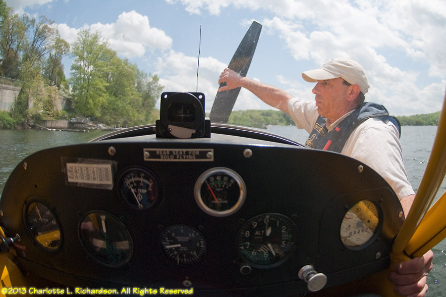 Landing and taking off (on one float; it was a very hot day) on the Housatonic River.