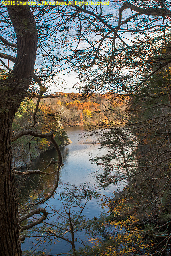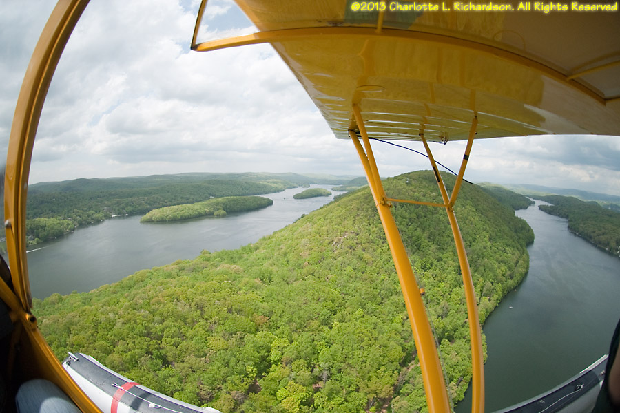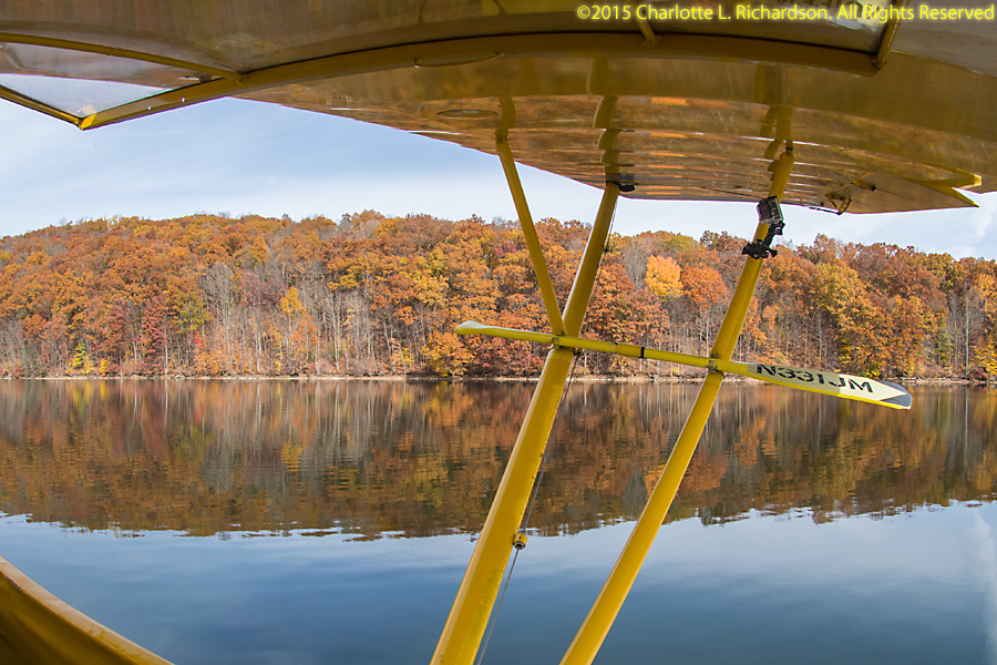 Another visit to fly this Cub on Halloween 2015. The wind was almost dead-calm, so a lot of this flight was glassy-water takeoffs and landings. I had a camera along myself this time and could shoot photographs while Tony handled the Cub. The foliage this late in the season was mostly oaks. After the flight and lunch, Paul and I took a walk around Lovers Leap State Park to photograph the same area from ground level that I had photographed from the air.