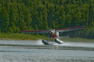 A Beaver taking off on one float |