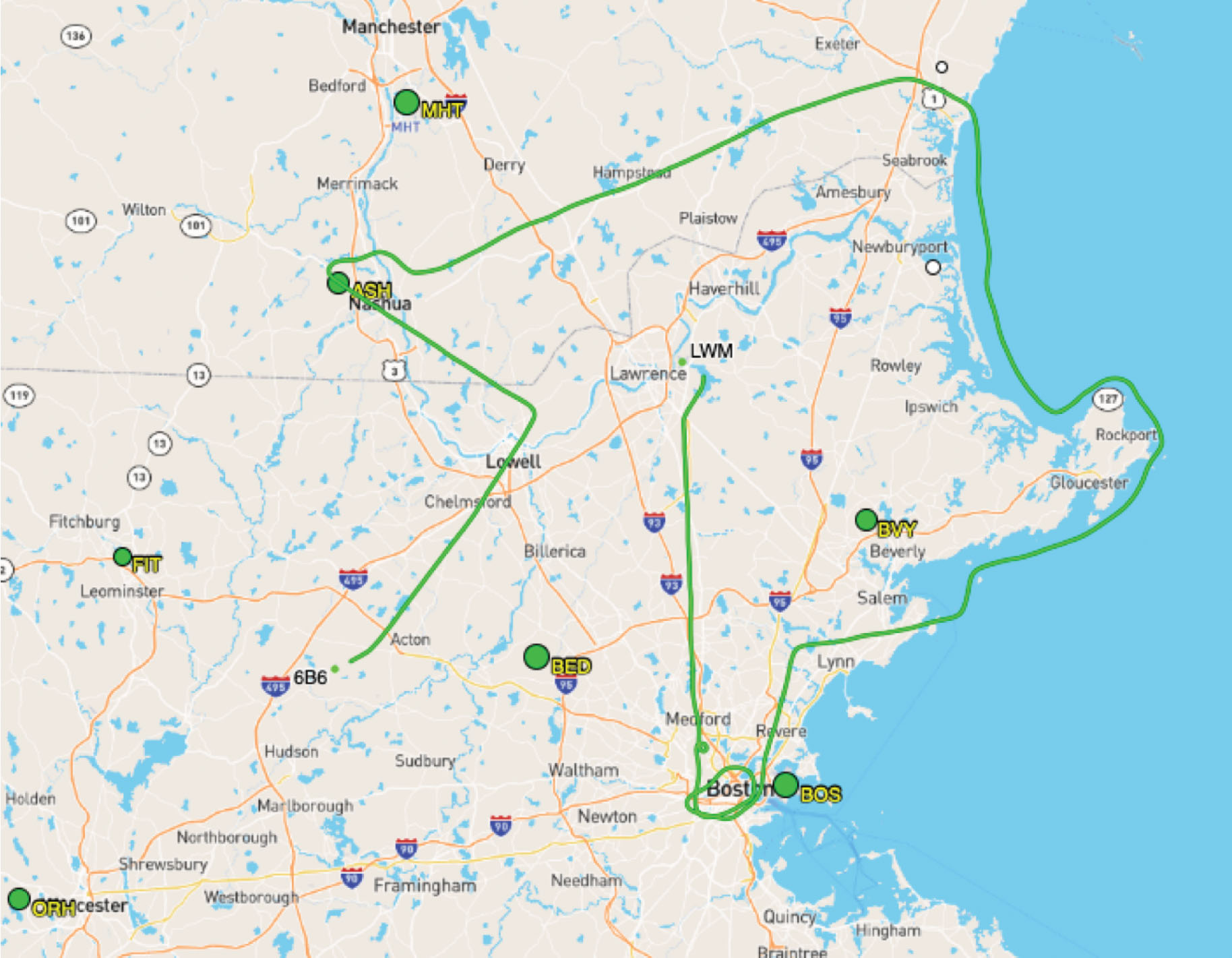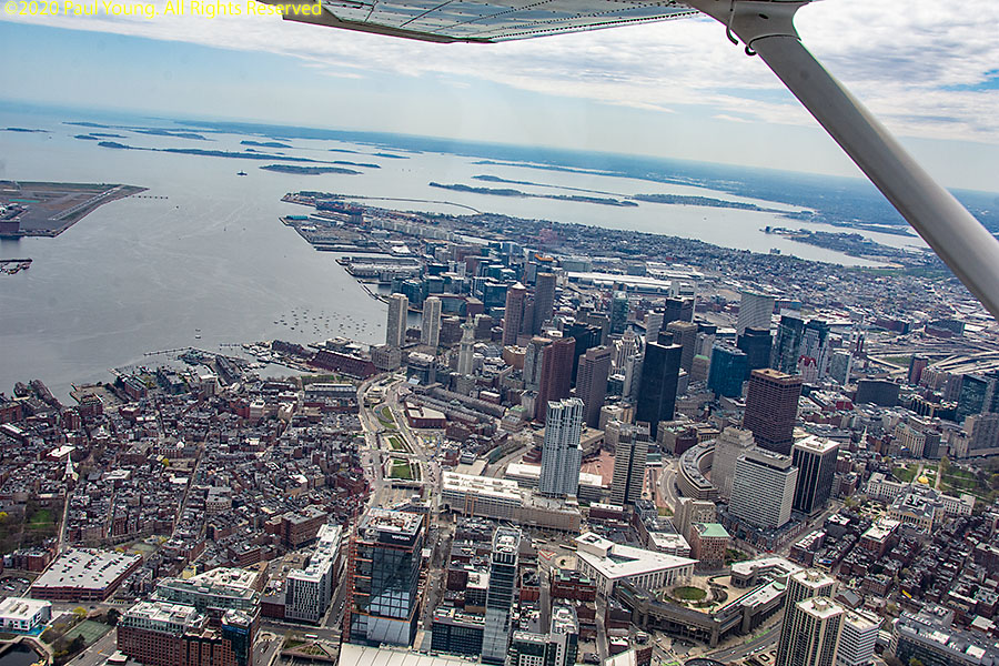 During the COVID-19 pandemic, we were able to easily get a clearance to overfly Logan Airport, which was nearly deserted, and fly the Boston scenic route without prior notice, so we made this flight four times, twice from the north and twice from the south.