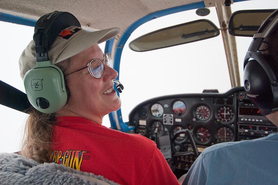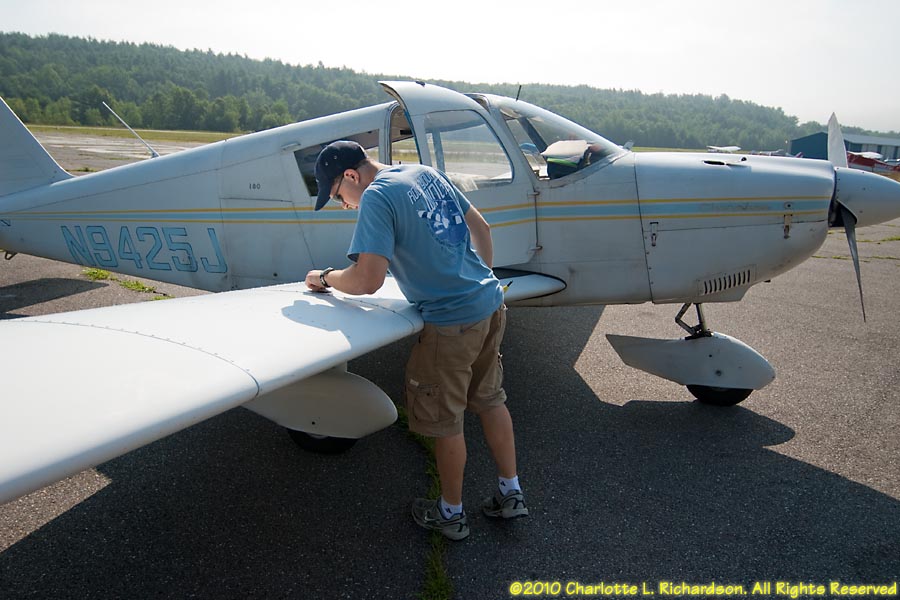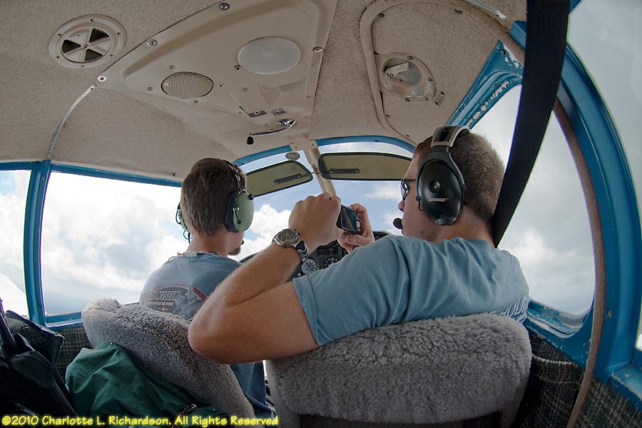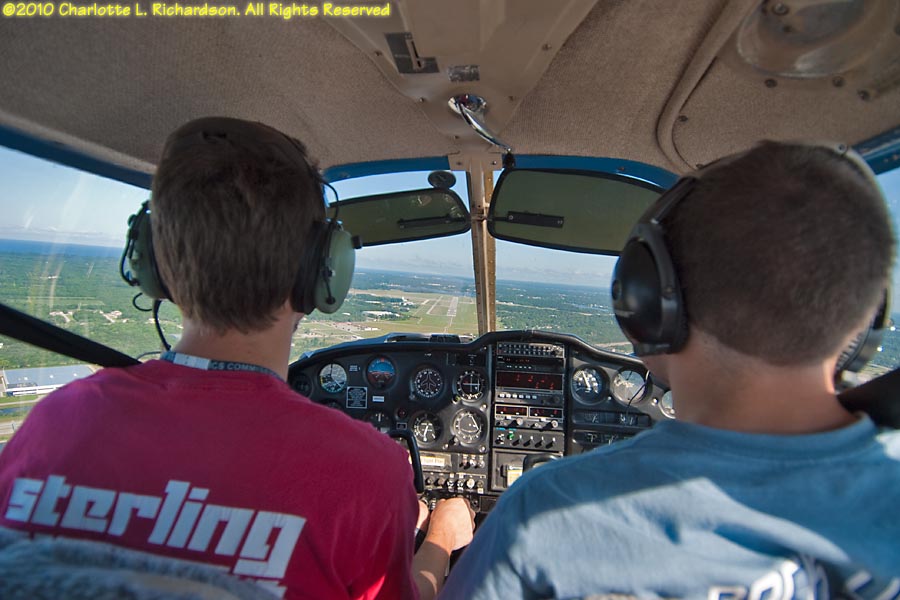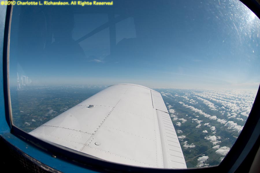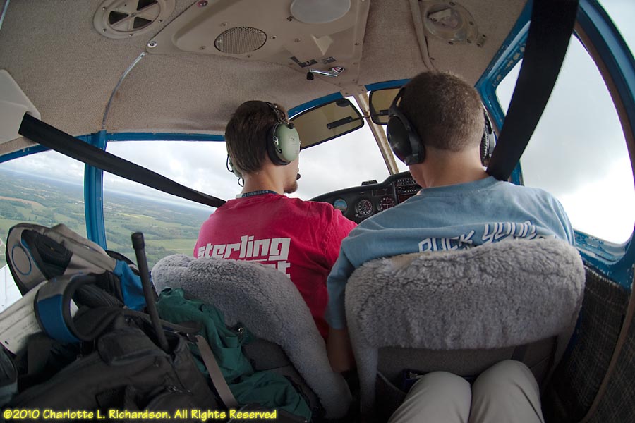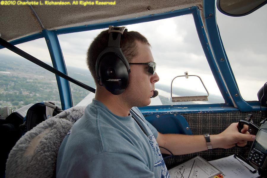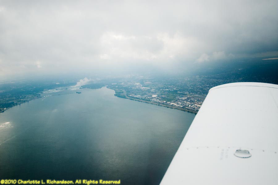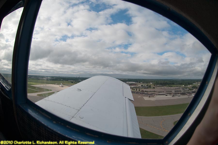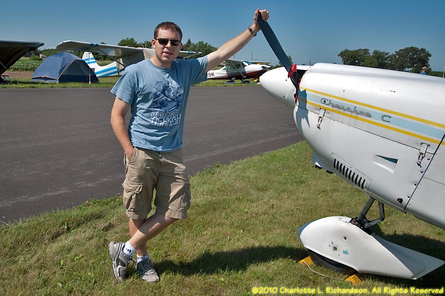 As a new student pilot, Charlotte flew to Oshkosh for Airventure 2010 with Devan Wiebe and Troy DiGiovanni in their Piper Cherokee, while Paul took a commercial flight with most of the luggage. Our route west from 3B3 took us over Niagara Falls. We ended up overnighting in Lansing, Michigan, due to thunderstorms, and flew into Fond du Lac the next morning. Later in the week the boys moved the plane to Oshkosh.