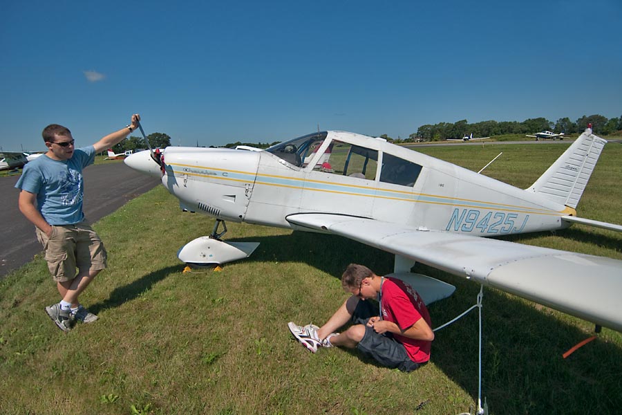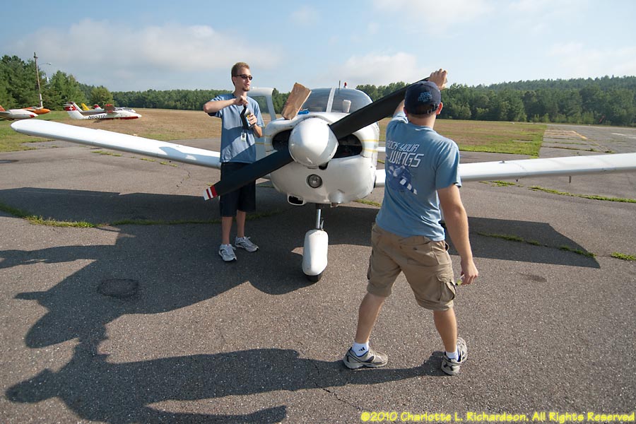Cherokee on the ground at 3B3 Troy preflighting Devan and Troy preflighting Chsrlotte and Troy at the controls Charlotte at the controls Devan and Troy Devan and Troy Troy Niagara Falls view out the window Devan and Troy cloud streets Devan and Troy, doing what Devan does best: landing eastern shore of Lake Michigan Devan and Troy, with chart approaching west shore of Lake Michigan wind turbines on the ground in Fond du Lac Troy Devan and Troy in Fond du Lac