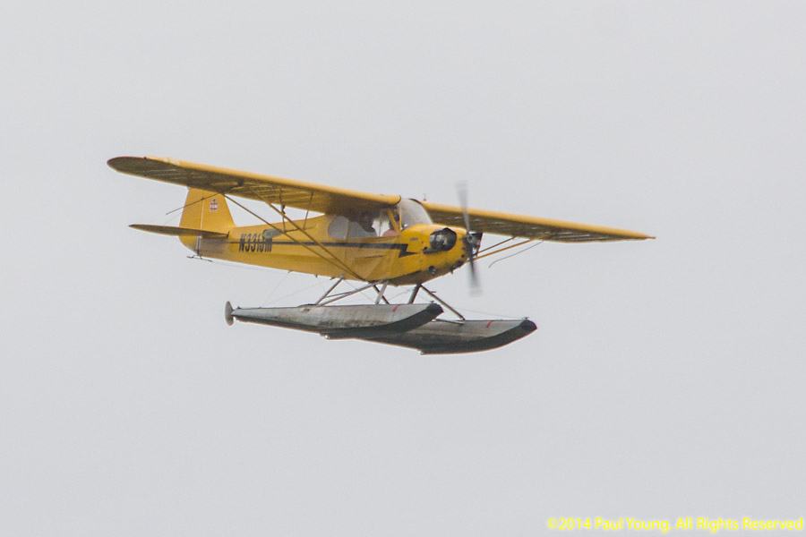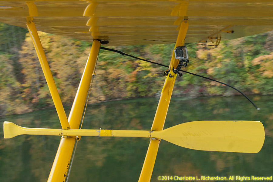 Another visit to fly this Cub with Tony, October 13, 2014. The cowling has been fixed to match the new exhaust system. We mounted the GoPro on the right wing strut. This flight was almost entirely glassy water takeoffs and landings. I step-taxiied under the I84 bridge at one point, taking off again just beyond it.