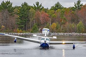 Flying a hull seaplane (flying boat), the Lake Buccaneer.